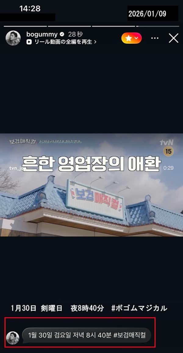 🌟ゲストの話の詳細は過去投稿で>>2025.12.30投稿 「おつかれさま」のご縁再び!パクボゴムの新番組「ボゴムマジカル」に、パクヘジュン&チェデフン出演決定!