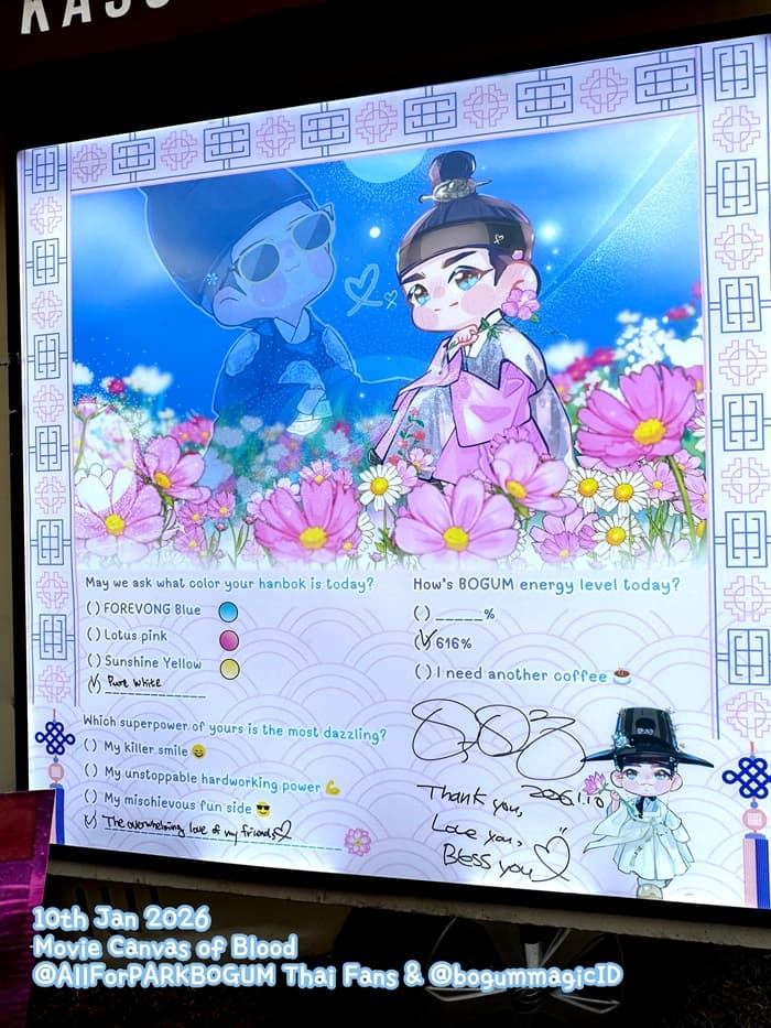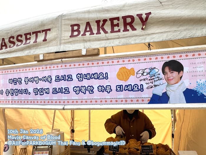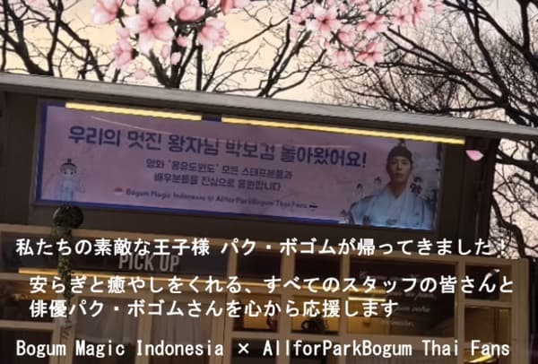 → パク・ボゴムへの愛と笑顔、そして応援を広めます右の横断幕(タイチーム制作)