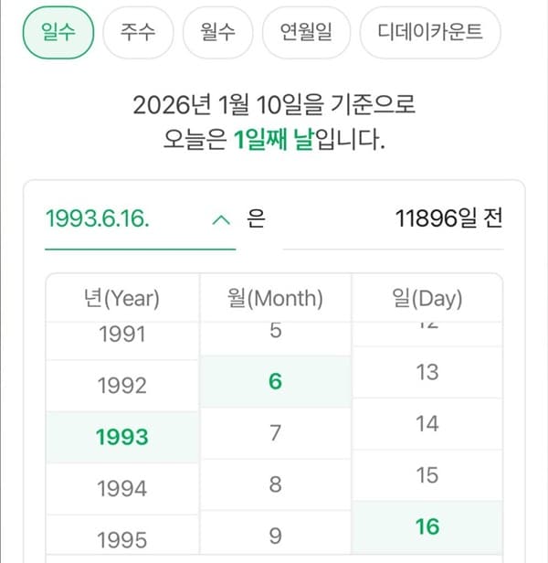 意味:ボゴミの誕生日「1993年6月16日を基準日に設定」。