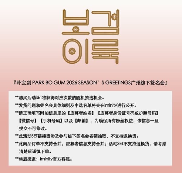 [📢] PARK BO GUM 2026 SEASON’S GREETINGS 발매 기념 광저우 대면 팬사인회 안내 (iminitv)