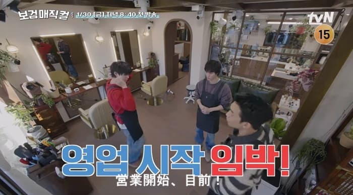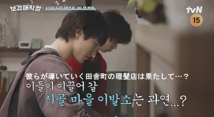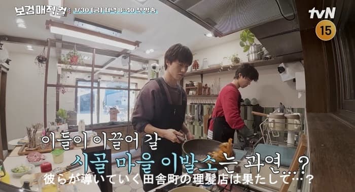特に、ヘア担当のパク・ボゴムが客の髪を切り、その隣でイ・サンイが掃き掃除をし、クァク・ドンヨンは各種美容道具を持ってサポートしており、息の合った三兄弟のケミストリーが際立つ。全員が満面の笑みを浮かべており、田舎の村を明るく照らしてくれる兄弟たちの物語への期待が高まっている。