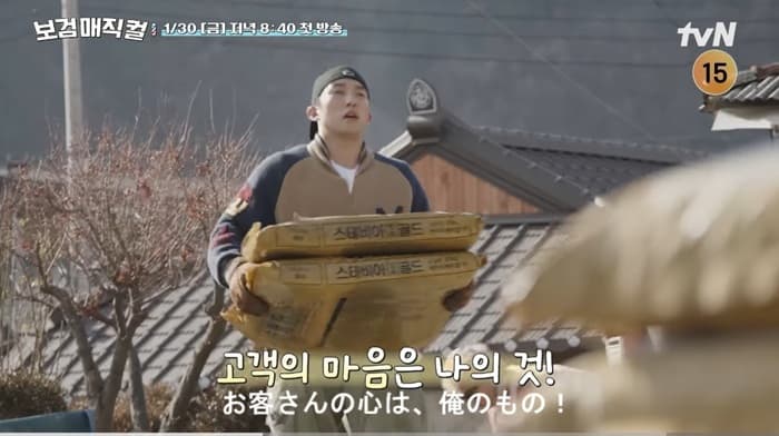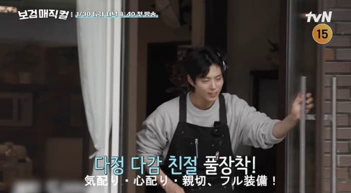 パク・ボゴムは、客への穏やかな挨拶はもちろん、「ご不便でしたらおっしゃってください」と語り、思いやりにあふれ親切なヘア担当としての一面を見せている。さらに、真剣な表情で客の髪に製品を塗り、バリカンで細やかに髪を整える場面からは、真心が感じられる。