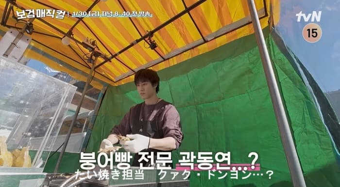一方、クァク・ドンヨンは「たい焼き」を作っており、視線を引きつける。