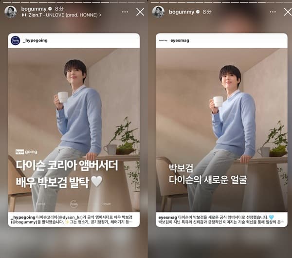 ダイソンコリアは「信頼感があり、大衆と自然に呼吸するパク・ボゴムのイメージが、エンジニアリングを中心とする、ダイソンの企業哲学を消費者に効果的に伝えられると判断し、彼を公式アンバサダーに抜擢した」と述べた。