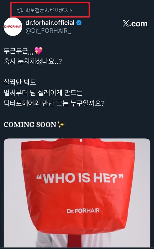 닥터포헤어와 만난 그는 누구일까요?— dr.forhair.official (@Dr_FORHAIR_) January 22, 2026