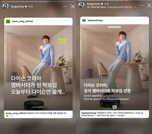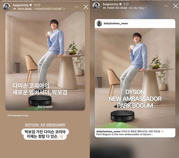 ダイソンコリアは「信頼感があり、大衆と自然に呼吸するパク・ボゴムのイメージが、エンジニアリングを中心とする、ダイソンの企業哲学を消費者に効果的に伝えられると判断し、彼を公式アンバサダーに抜擢した」と述べた。