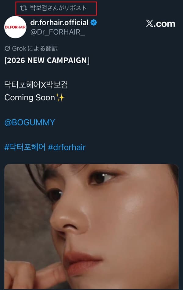 公式記事が初登場!ドクターフォーヘア「ブランドモデルに俳優パク・ボゴムを抜擢」(新VTRも追加公開)