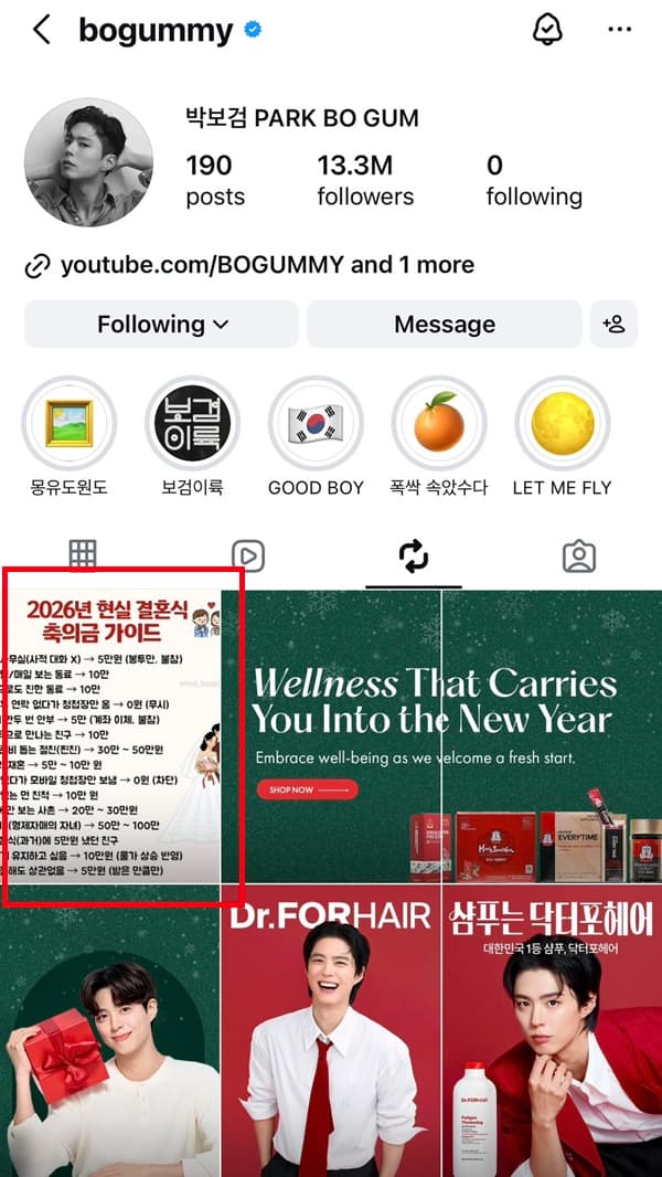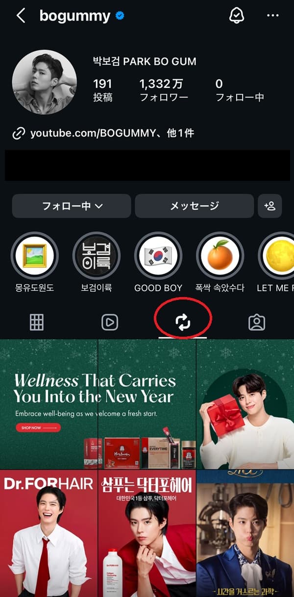 ボゴミのインスタのリポストタグ: 正官荘の投稿が並んでます