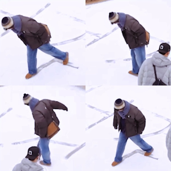 雪の上に文字を書いてる ボゴミとサンイ&ドンヨン君ww