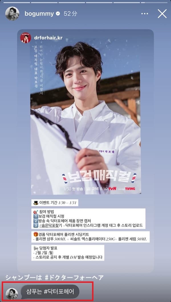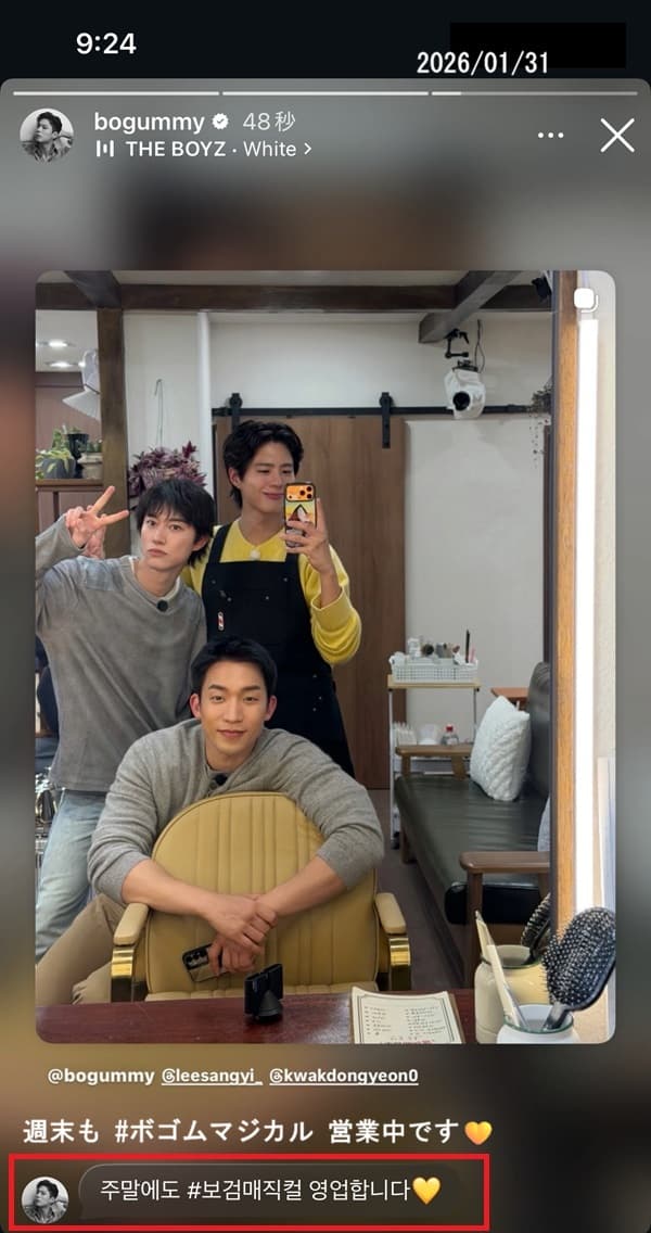 (総合)パク・ボゴム、本気で“やってのけた”…美容室を開いたと言っていたら「ボゴムマジカル」同時間帯 2026.01.31 09:47