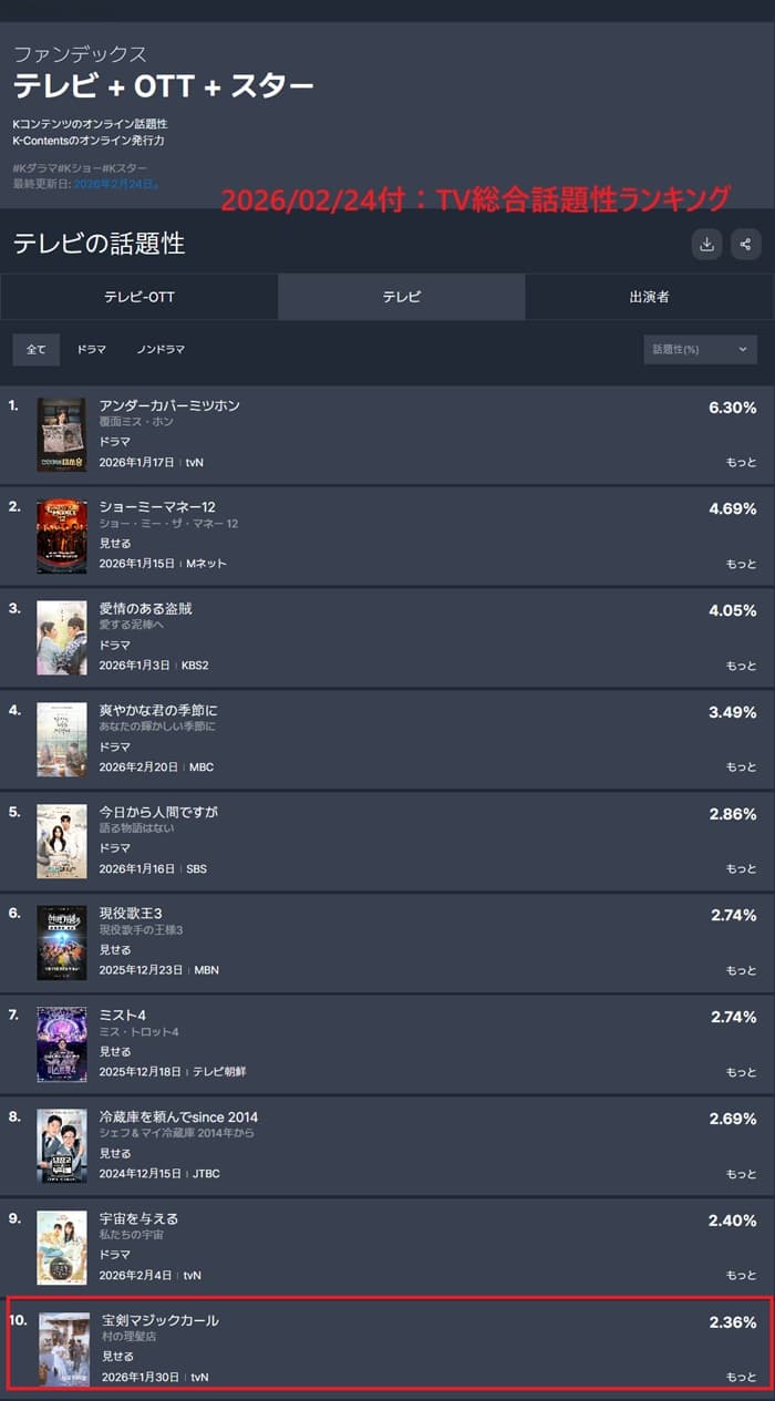 ボゴミは、出演作が放送されるたびに、この「話題性ランキング」に登場する常連さんで😅