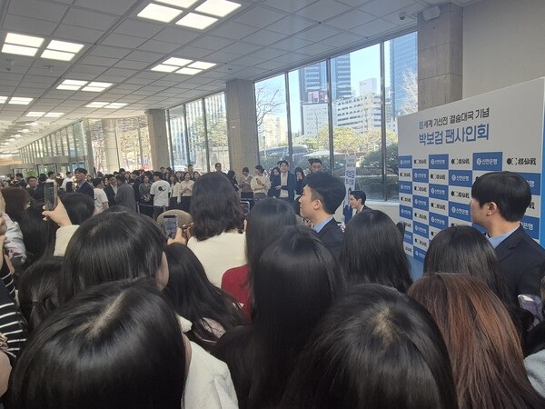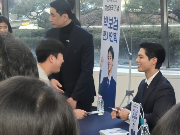 事前に申し込んだ社員のみがサインを受けられるイベントだったが、パク・ボゴムを実際に見て写真を撮るため、銀行の社員数百人が業務時間中に一斉に集まり、慌ただしい状況となった。