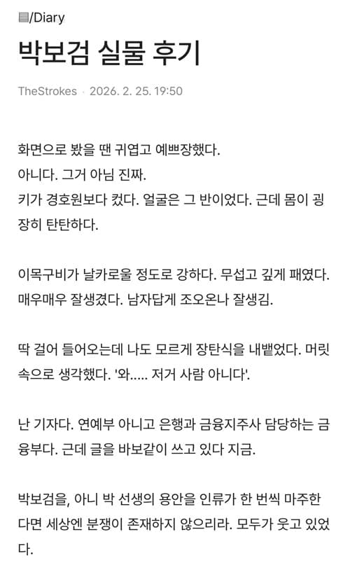 パク・ボゴム実物レビュー 2026.2.25 19:50