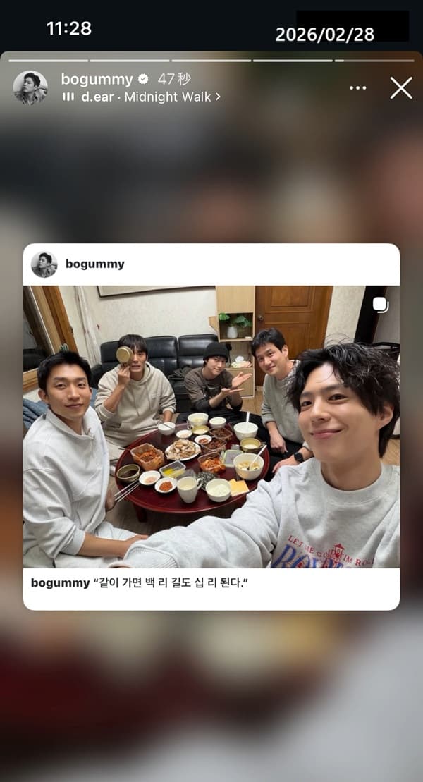 パク・ボゴム公式インスタ2/28投稿「一緒に行けば、百里の道も十里になる」