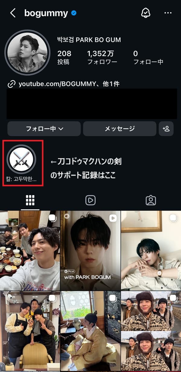 ボゴミのインスタに変化あり|ハイライトが「コドゥマクハンの剣」だけに…