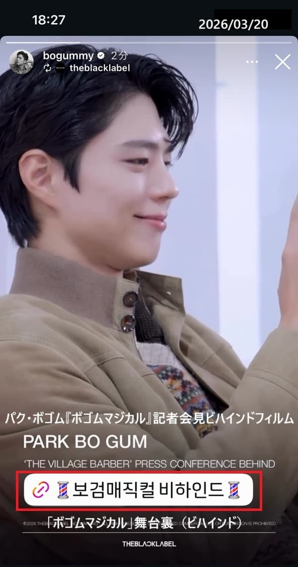🔗 パク・ボゴム『THE VILLAGE BARBER』記者会見ビハインドフィルム