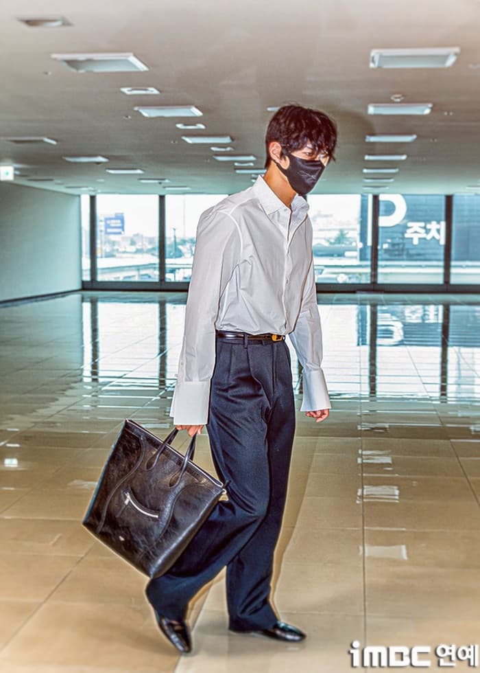 この日パク・ボゴムは、ブロー技術が抜群の「マジカル」のヘアに、ホワイトシャツとブラックスラックス、素敵な靴、ベルトを着用し、大きなトートバッグとともに空港ファッションを披露し、温かい魅力を見せた。