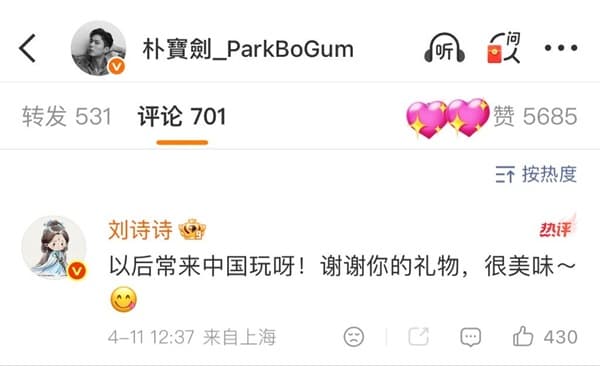 パクボゴム公式ウエイボー更新!リウシーシーからコメントも!