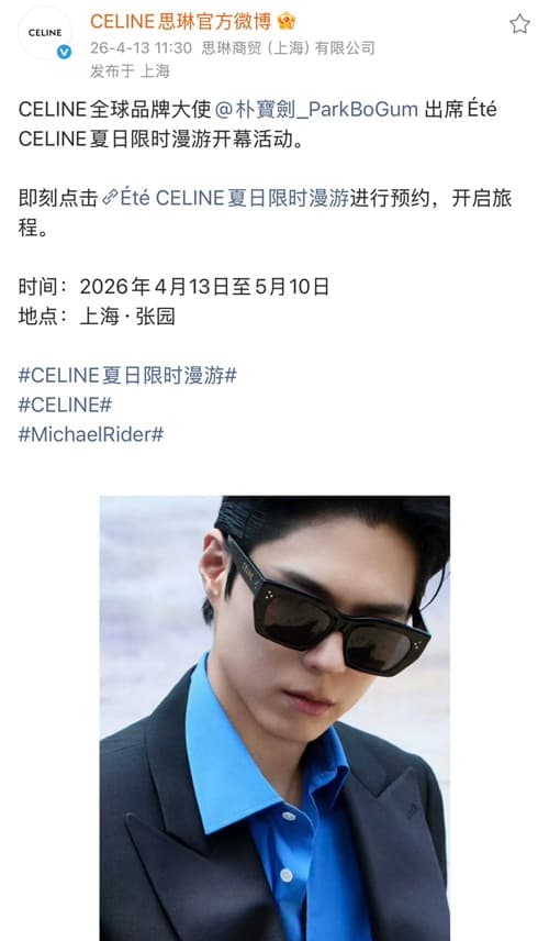 セリーヌ公式ウエイボーで「パクボゴム公式写真」を公開!