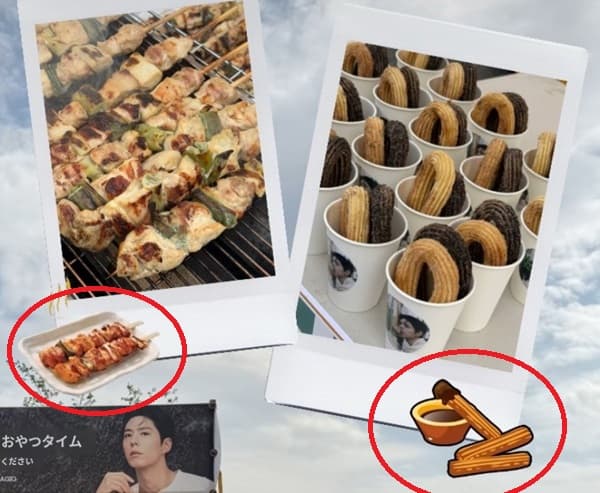 右上には イラスト付きの「焼き鳥とドーナツの写真」💗