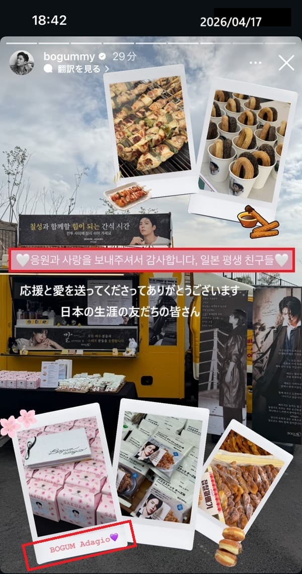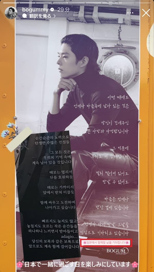 パクボゴム公式インスタストーリー「ボゴムアダージョの応援に感謝」