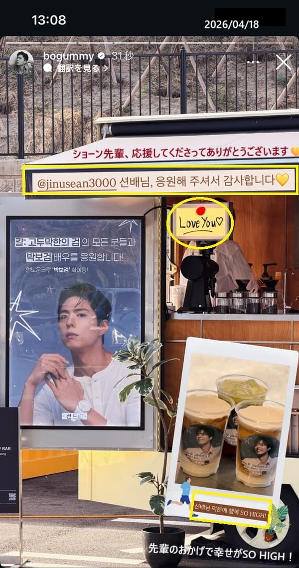 ㅇㅇ(118.235)「いいね」04.18 14:32:28ㅇㅇ(122.37)「先輩めっちゃ可愛いㅋㅋ パク・ボゴム撮影ファイティン」04.18 14:34:22
