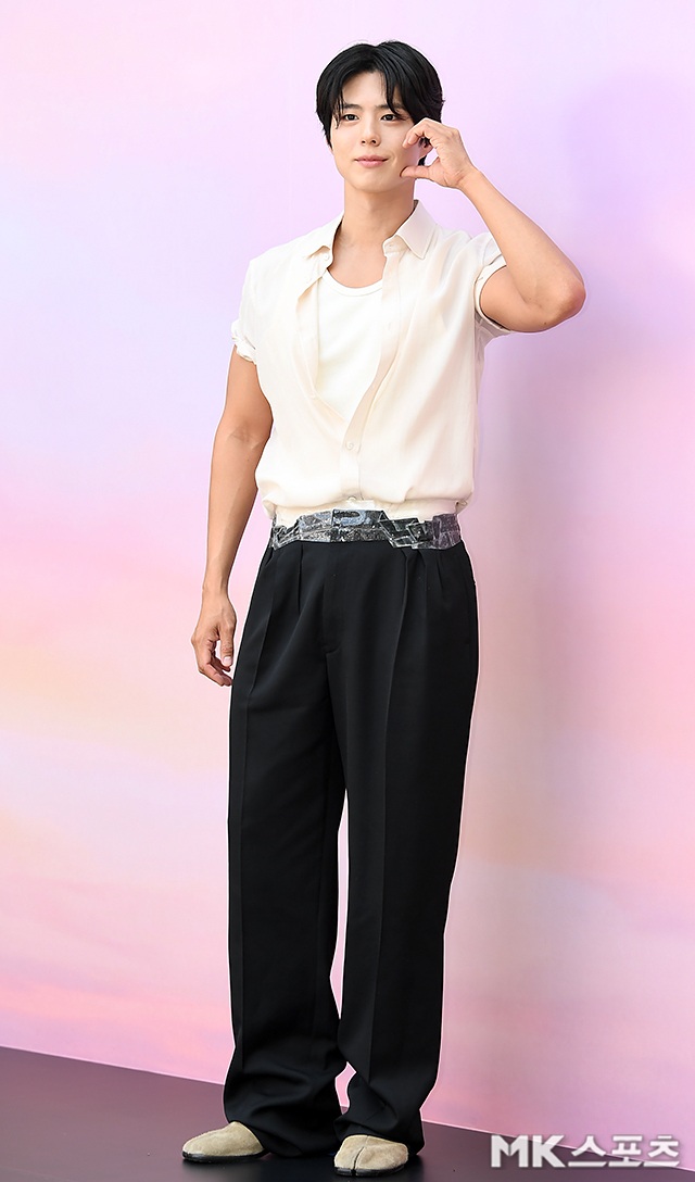 指ハートポーズから手を振るあいさつまでファンサービスを続け、「やはりパク・ボゴム」という反応を引き出した。きちんとした中に隠された破格さ、そして予想外のスタイリングまで加わったこの日のファッションは、パク・ボゴムならではの雰囲気をさらに際立たせた。