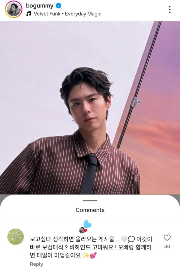 一昨日の投稿に入ったファンのコメントに ボゴミがいいねしてくれた模様(スゴイ)